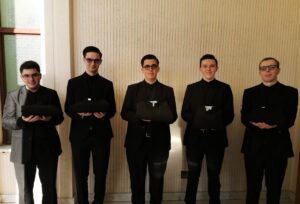 Prin acest moment important, cei cinci tineri au făcut un prim pas important în drumul lor spre sfânta Preoție, un drum de-alungul căruia vor putea învinge orice ispită și încercare, dacă îl vor avea alături pe Mântuitorul Cristos, căruia astăzi i-au răspuns afirmativ chemării de a-l sluji. Să-i însoțim cu rugăciunea noastră pe acești tineri, care au îmbrățișat chemarea Domnului și să ne rugăm pentru noi vocații la sfânta Preoție.