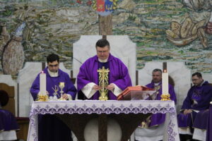 Vizita la Chișinău a început cu adunarea seminariștilor și a credincioșilor din Chișinău în jurul mesei Euharistice, iar cântarea la Sfânta Liturghie a fost susținută de schola cantorum a seminarului.