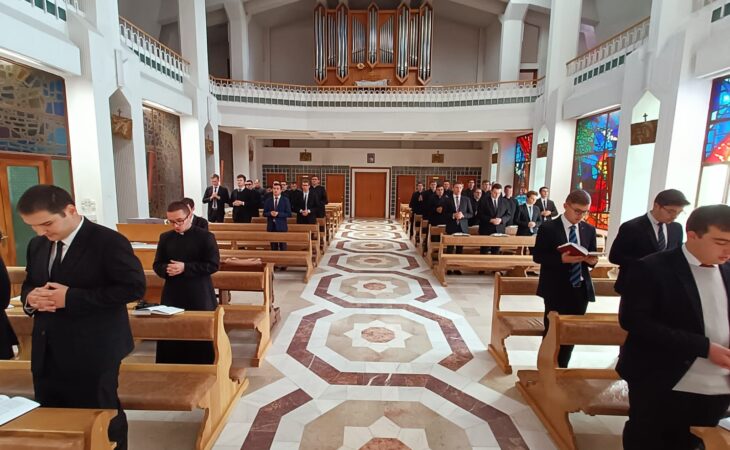 Zilele de reculegere s-au încheiat vineri cu Sfânta Liturghie de dimineață. În cadrul discursului de încheiere pr. Eugen Lucaci și-a exprimat gândul de recunoștință pentru cele trei zile de Exerciții Spirituale pline de roade pentru seminariști. După care părintele a oferit binecuvântare finală împreună cu indulgența plenară.