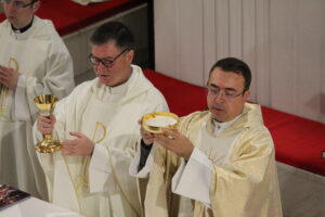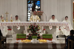 La ora 18:00 a aceleași zile a avut loc sfânta liturghie la Catedrala „Sfânta Fecioară Maria, Regină” din Iaşi, prezidată de ES Iosif Păuleț, la care au fost prezenți toți participanții la olimpiadă. În cadrul predicii, ES Iosif Păuleț i-a îndemnat pe elevi să „fie mai buni, pentru a face o lume mai bună” și totodată să lupte împotriva tendinței de a păcătui. El spunea că acest bine poate fi înfăptuit doar prin luptă, nu doar cu forțele proprii, ci „implorând de la Dumnezeu în rugăciune ajutorul și harul său”.