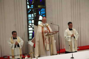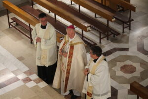 În cadrul acestei celebrări PS Aurel Percă a oferit atât celor șapte diaconi, cât și nouă celor prezenți un cuvânt de învățătură, un cuvânt de speranță pentru cei care așteaptă să pășească această treaptă și un cuvânt de dulce amintire pentru cei care l-au săvârșit deja. Ca model ne-a fost oferit chipul profetului Isaia proclamat în lecturi. Privind la chipul acestui chemat de Dumnezeu, celui căruia Dumnezeu i-a făcut gura ca o sabie tăioasă, cel adăpostit la umbra mâinii sale, cel pe care, ca pe o săgeată ascuțită la pus în tolba sa (Is 49,2), realizăm lucrarea minunată pe care Domnul o realizează în cel pe care îl cheamă. Acestuia i se o oferă o misiune și împreună cu aceasta puterea de a o împlini conform planului divin.