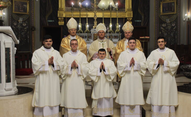 După omilie a urmat ceremonia de hirotonire a candidaților la treapta diaconatului prin impunerea mâinilor PS Iosif Păuleț. Un moment special a fost acela în care candidații au fost prosternați la pământ, în timp ce era invocat sprijinul Bisericii Triumfătoare prin cântarea litaniei tuturor sfinților, pentru ca cei 5 tineri să fie susținuți în promisiunile lor pe care le-au făcut în vederea slujirii lui Dumnezeu și a Bisericii.