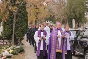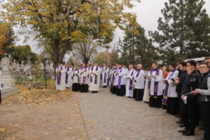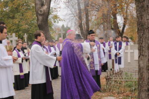 A urmat Sf. Liturghie celebrată în catedrala „Adormirea Maicii Domnului” din Iași de părintele rector al seminarului, Mons. Benone Farcaș la ora 10:00. În cadrul celebrării, cuvântul de învățătură al parohului catedralei, Paul Budău, a pus în lumina aceeași continuitate a Solemnității Tuturor Sfinților, dar și finalitatea unui astfel de moment, o adunare care celebrează viața, speranța, învierea, și care răspunde dorinței de a face ceva concret pentru cei din purgator. Ca în fiecare an, la ora 14:00, a urmat procesiunea în cimitirul Eternitatea unde i-am amintit pe episcopii, preoții, seminariștii și persoanele consacrate răposate. Acest moment de rugăciune a fost condus de PS Aurel Percă, Episcop Auxiliar de Iași.