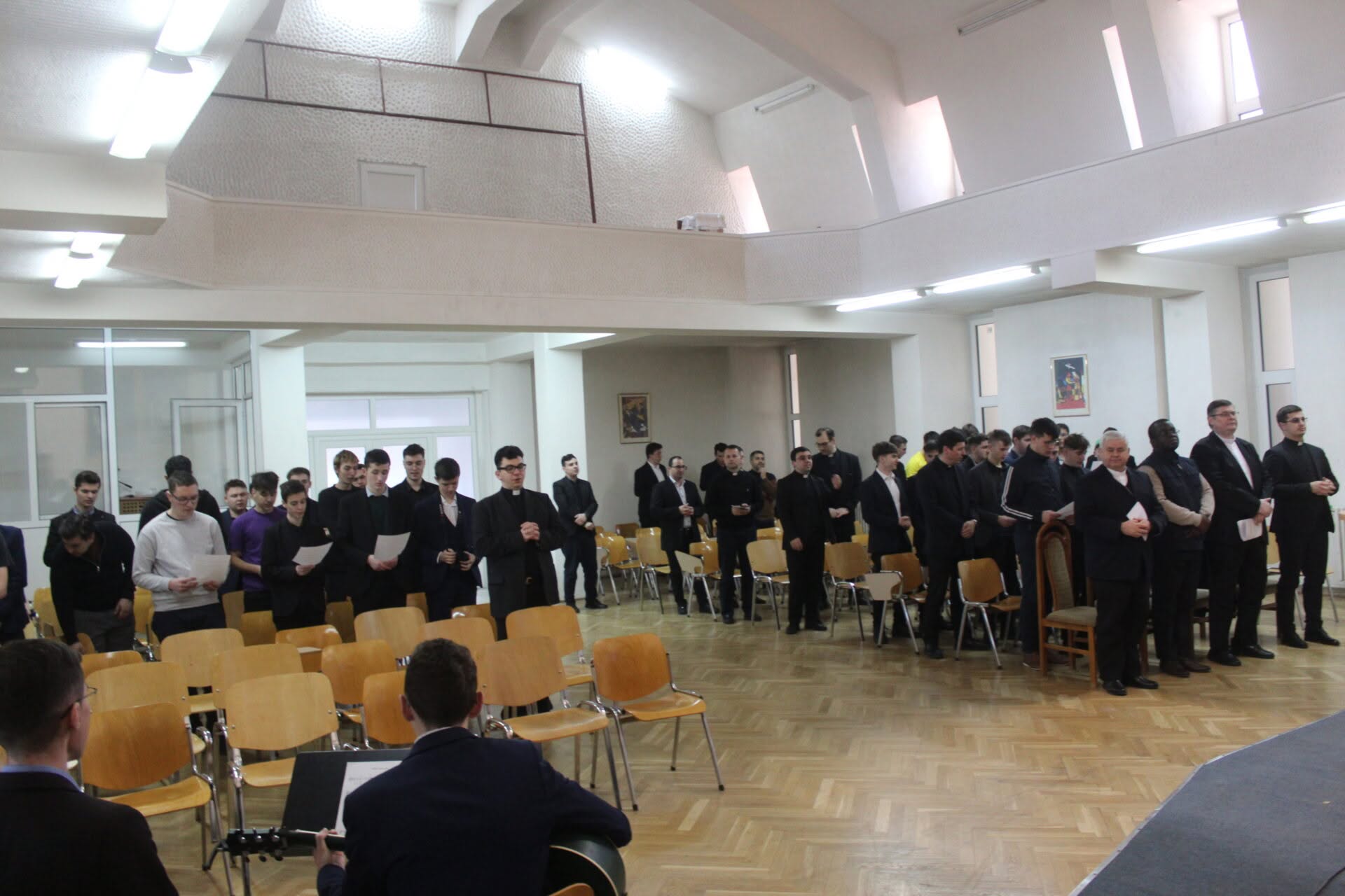 Sâmbătă, prima parte a zilei a fost dedicată unui moment de comuniune în Aula Magna a Institutului la care a participat și PS Petru Sescu, Episcop auxiliar de Iași. Această activitate a cuprins salutul episcopului, al rectorului, pr. Ștefan Lupu și diverse mărturii din partea responsabilului cu Oficiul pentru Vocații, pr. Ricardo Dominic Baciu, din partea seminariștilor, dar și din partea participanților.