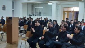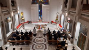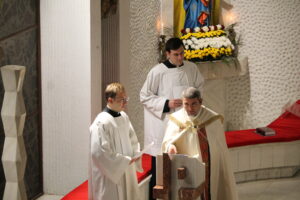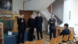 Ziua s-a încheiat cu un moment de adorație la ora 18.30 condusă de pr. Florin Sescu. În cadrul acestui moment scopul principal a fost acela de a-i face pe toți – preoți, surori și seminariști – să conștientizeze misiunea pe care o au de îndeplinit, nu doar în țările de misiune, ci în mijlocul celor care se află în imediata apropiere. Vocația misionară nu aparține doar celor care pleacă în țări îndepărtate unde numele Domnului nu este încă cunoscut, ci este și o exigență creștină pentru toți. Suntem chemați să vestim evanghelia trăind-o, fiecare acolo unde se află, făcând ca prezența lui Dumnezeu să fie una vie în orice loc.